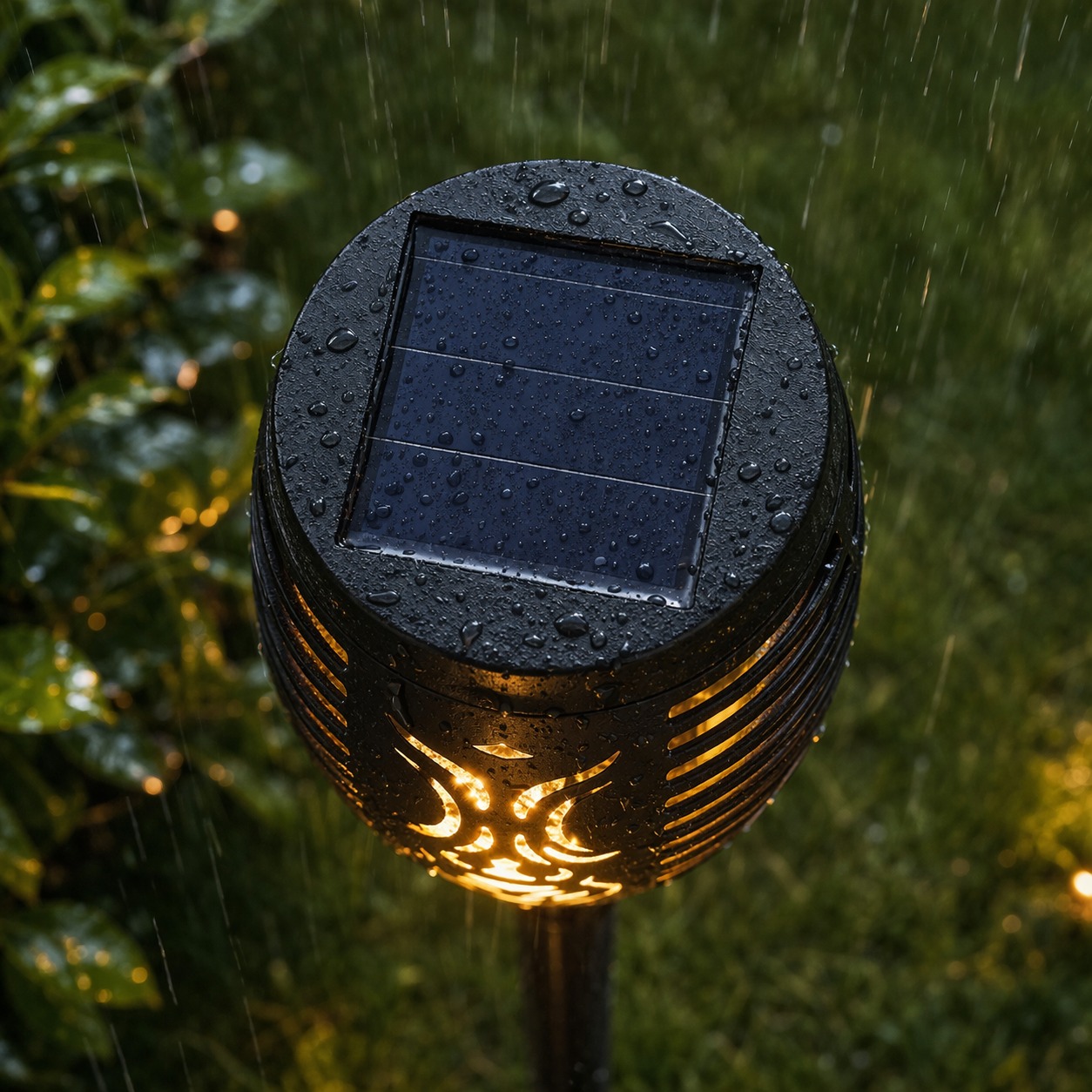 - Bez kabli i skomplikowanej instalacji – wystarczy wbić lampę w ziemię.