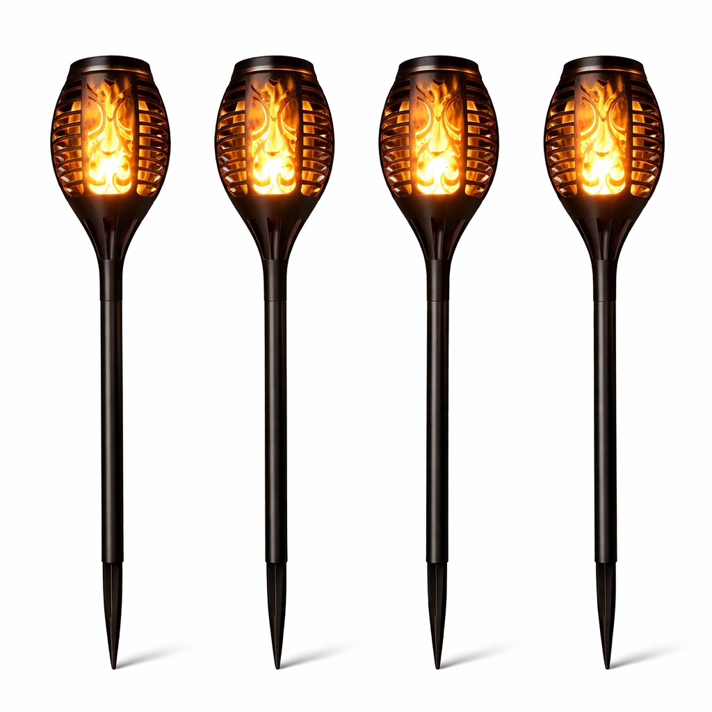 Każda lampa LED emituje ciepłe, przyjemne światło, imitujące migoczący płomień pochodni: