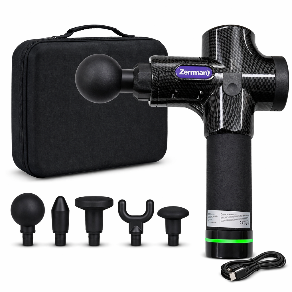 Do masażera Zerrman dołączony jest 6-końcówkowy zestaw, który pozwala dopasować rodzaj masażu do różnych partii ciała oraz indywidualnych potrzeb intensywności. Każda końcówka została zaprojektowana tak, aby umożliwić skuteczną i komfortową regenerację mięśni.